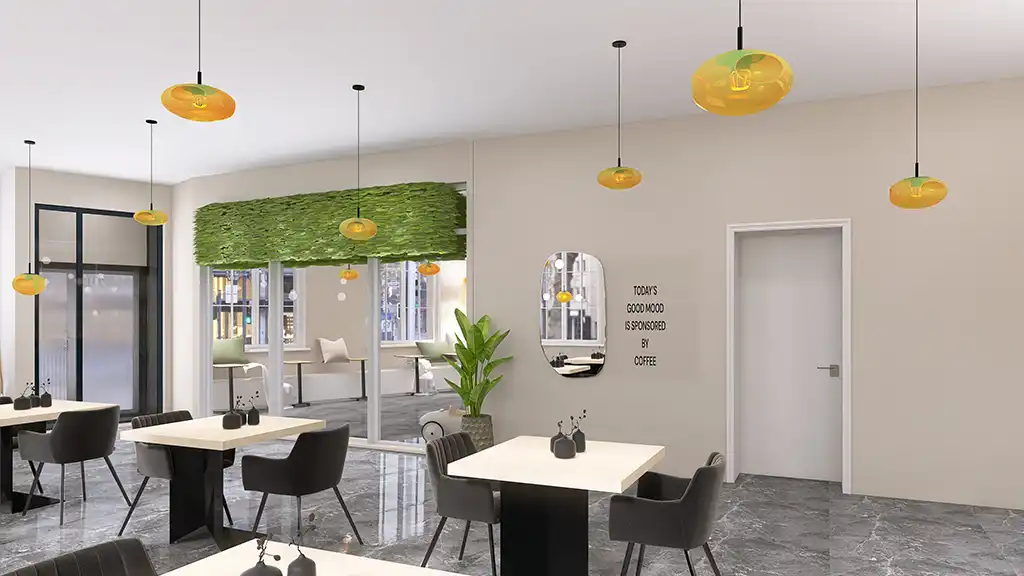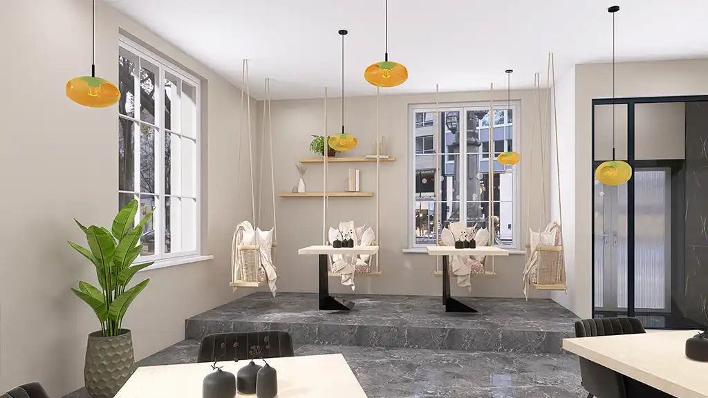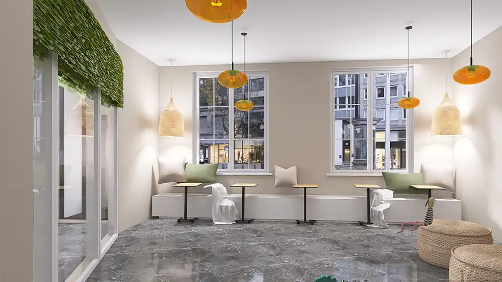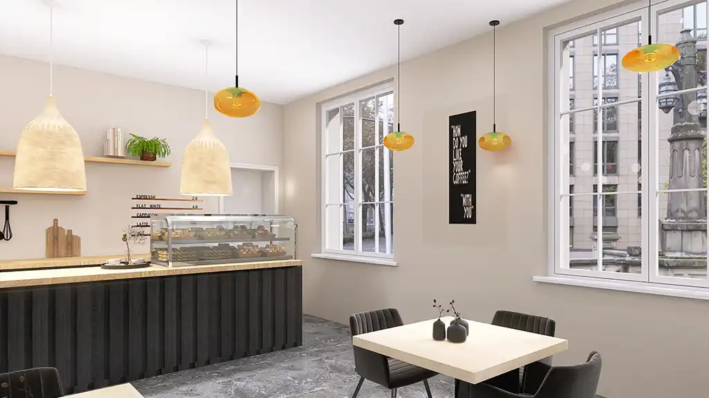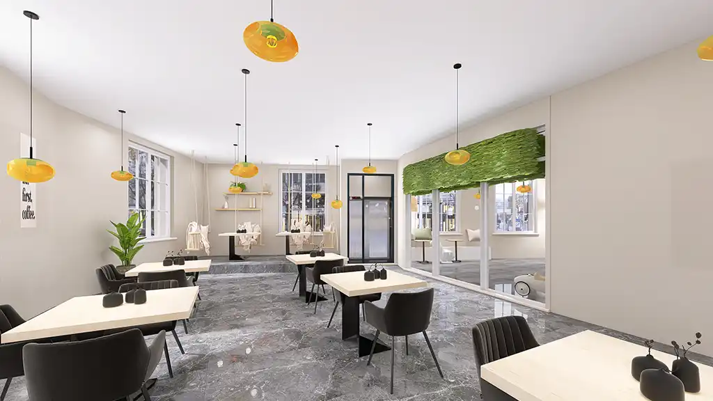Für dieses Projekt durfte ich die 3D-Visualisierungen eines modernen, aber zugleich gemütlichen Cafés gestalten. Der Fokus lag darauf, eine einladende Atmosphäre zu schaffen, in der sich Gäste wohlfühlen – ob beim schnellen Espresso oder beim entspannten Treffen mit Freunden.