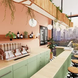 Für dieses Projekt habe ich den Thekenbereich eines bestehenden Cafés neu gestaltet. Ziel war es, eine freundliche, moderne Atmosphäre zu schaffen, die Wärme und Leichtigkeit ausstrahlt.